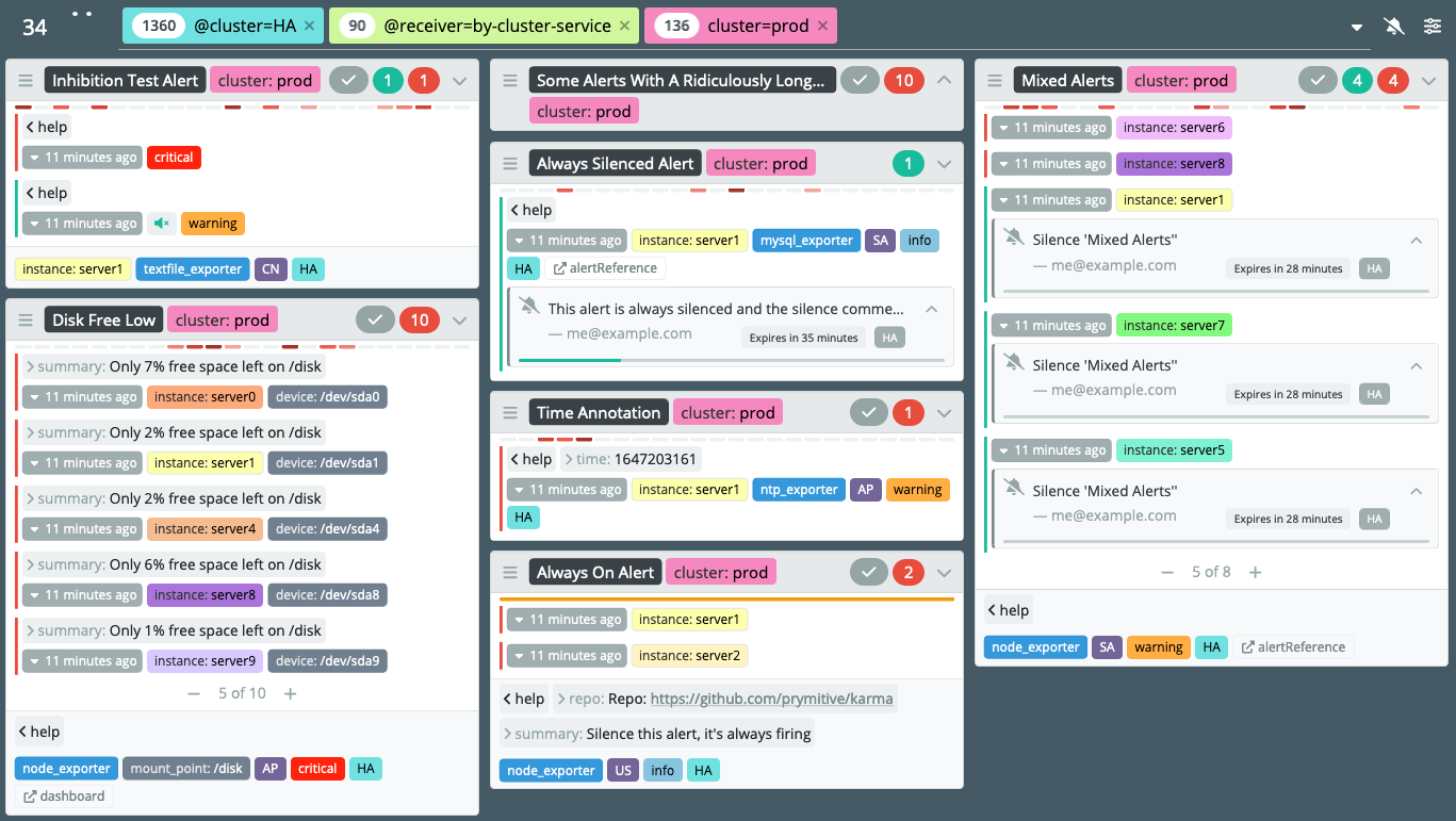Karma Alert Dashboard to foster communications among those working issues. Alert aggregation and deduplication.